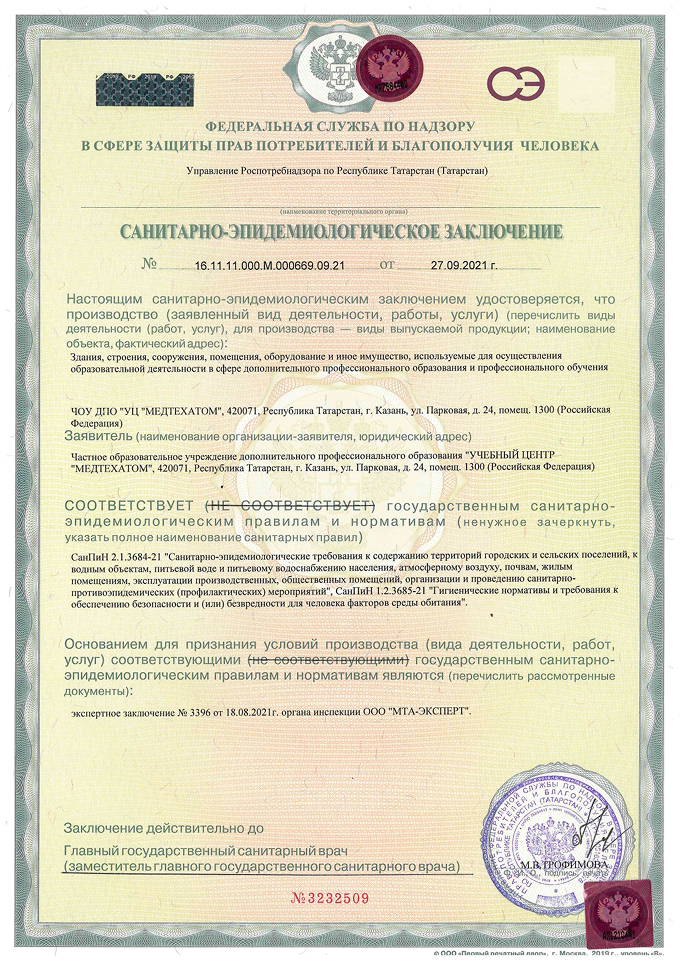 - получения санитарно-эпидемиологического заключения;
